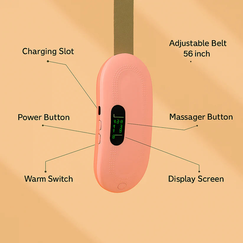 Our Period Cramp Relieving Heating Pad and Massager uses USB charging, ensuring convenience and flexibility. With three adjustable temperature settings and four massage modes, you can customise your experience based on your unique needs. It seamlessly fits into your lifestyle, allowing you to manage your period discomfort without disrupting your daily activities.